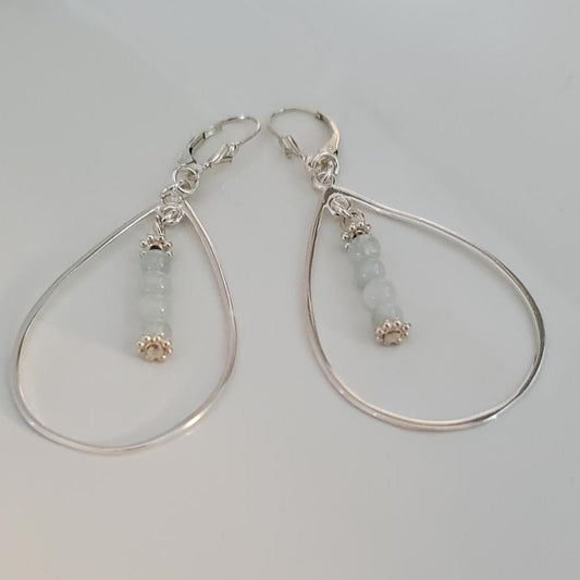 Sterling Silver Fleur-de-Lis and Aquamarine Teardrop Earrings
