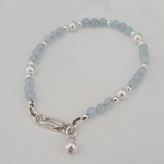 Sterling Silver, Aquamarine and Pearl Bracelet