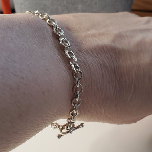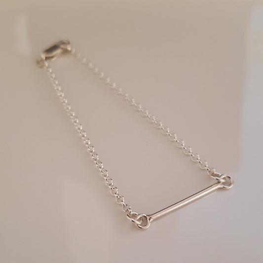 Sterling Silver Rolo Chain Bracelet with Aquamarine Crystal