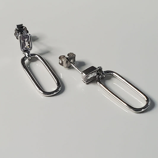 Sterling Silver Paperclip Freshwater Pearl Earrings