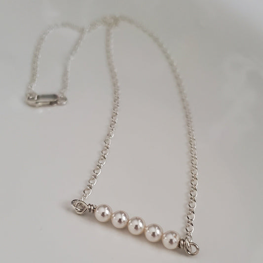 Sterling Silver Swarovski White Pearl Bar Necklace