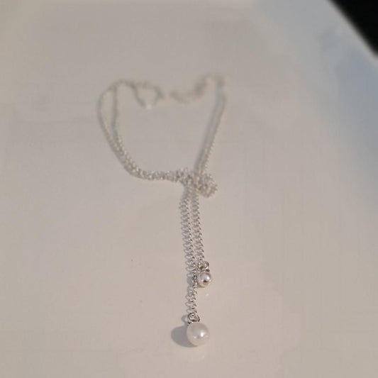 Sterling Silver Pearl Lariat Necklace