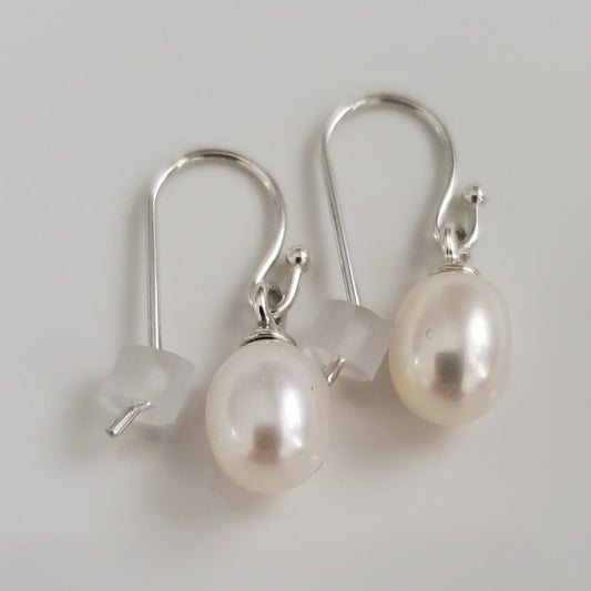 Sterling Silver Paperclip Freshwater Pearl Earrings